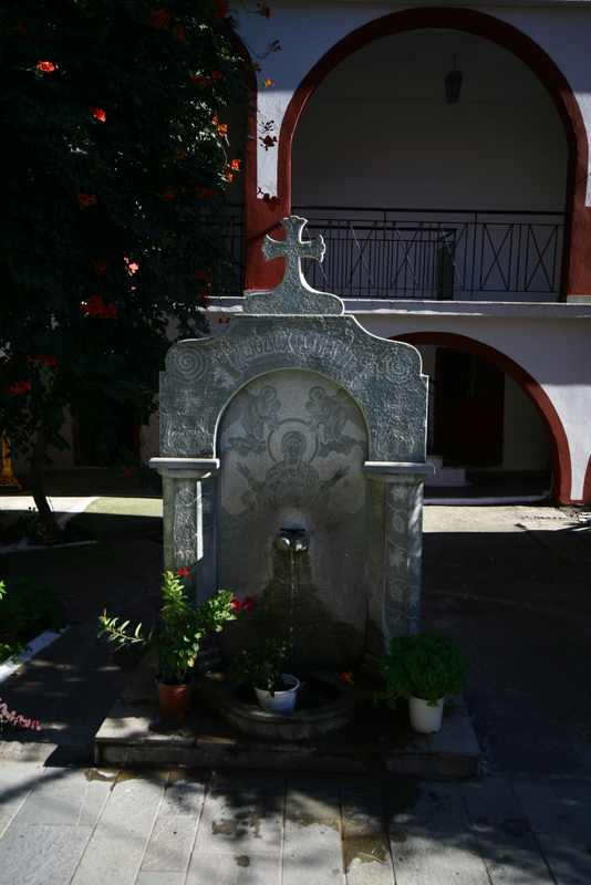 Η βρύση “Ζωοδόχος πηγή” στην αυλή της μονής απο την οποία τρέχει “αγίασμα”