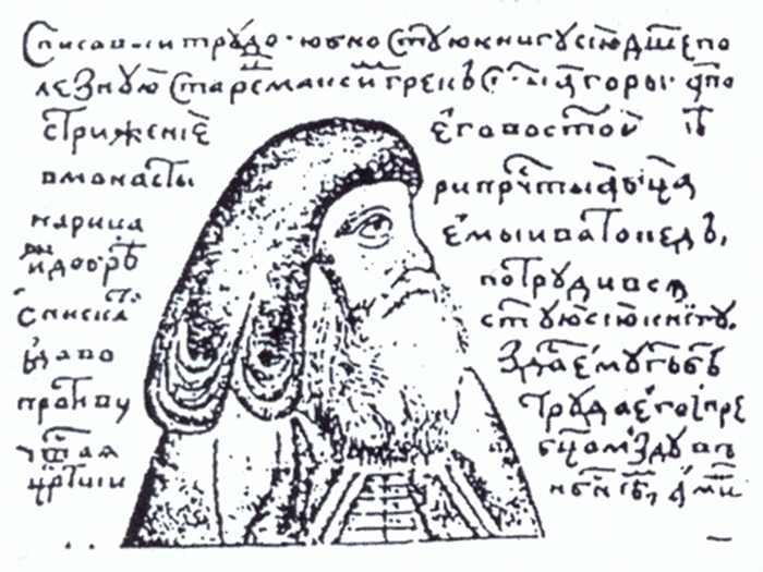 Η παλαιότερη απεικόνιση του Αγίου Μαξίμου του Γραικού. Συγκεκριμένα ο Ikonnikov μας πληροφορεί ότι η εικόνα πού δημοσιεύτηκε στο τρίτομο έργο της Ακαδημίας Καζάν (1862) και στην έκδοση της Λαύρας του Σεργίου της Αγίας Τριάδος (1910) πάρθηκε από τον τάφο του Μαξίμου. (V.S. Ikonnikov, Maksim Grek I Ego Vremija, Kiev, 1915, a. 196).