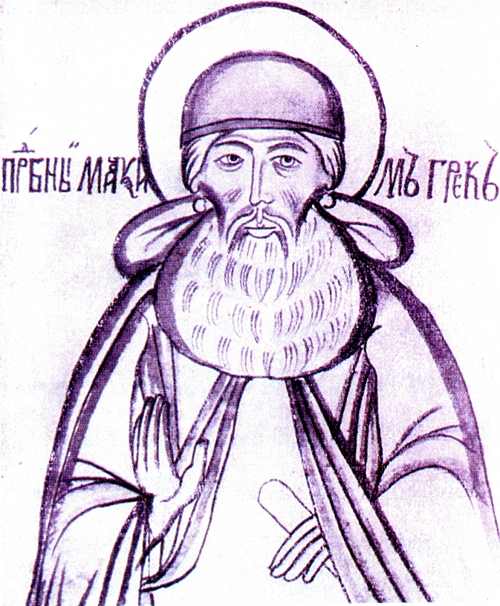 Από τις παλαιότερες ρωσσικές γκραβούρες που απεικονίζουν πιστά τη μορφή του Αγίου Μαξίμου του Γραικού