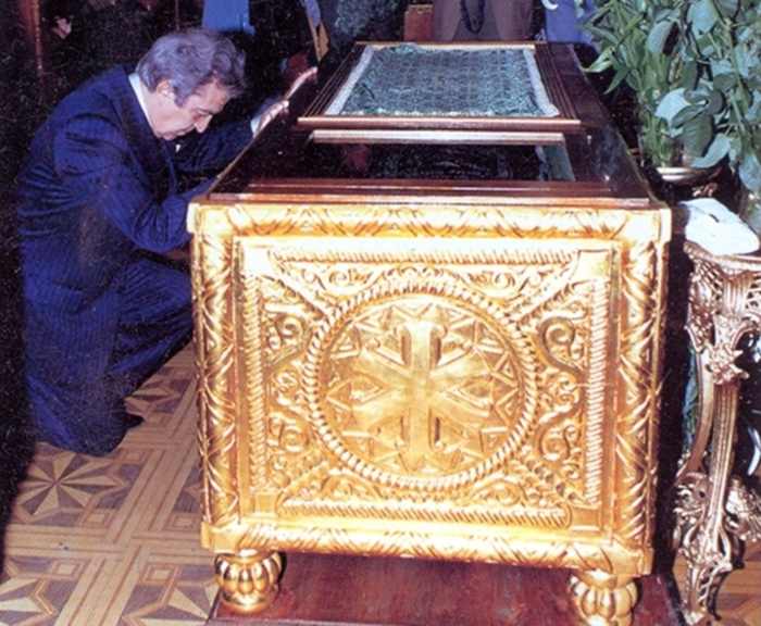 Ο εικονιζόμενος προσκυνητής, ο οποίος ασχολείται επί 20 συναπτά έτη για τον Άγιο Μάξιμο τον Γραικό και συγκεκριμένα για την αγιοποίηση, τη σύνταξη Ιεράς Ακολουθίας, την ανακάλυψη και δημοσιοποίηση του τάφου, την επίτευξη της Ανακομιδής των Ιερών λειψάνων τον, την συγγραφή βιβλίων (με πολυετείς, πολύμοχθες και πολυδάπανες έρευνες) για άγνωστα σημεία της ζωής του και κυρίως για την ανεύρεση, τη συλλογή και το κριτικό σχολιασμό όλων των ελληνόγλωσσων έργων του, είναι δυνατόν, όταν πρωτοπροσκύνησε τα Ιερά Λείψανα του μαρτυρήσαντος Αγίου του, να μην συγκινηθεί και να μη κλάψει;