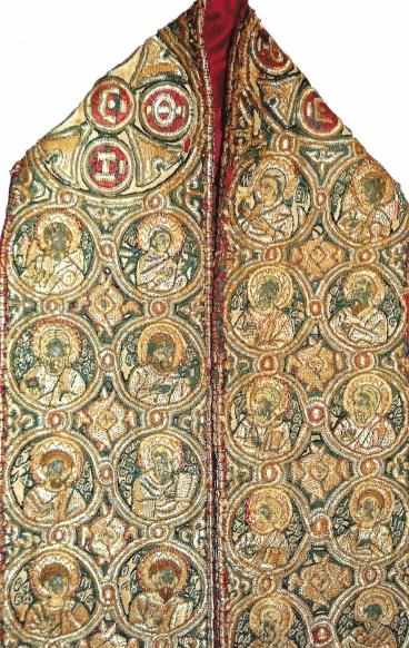 Ωμοφόριο που μετατράπηκε σε επιτραχήλιο του Αγίου Φιλοθέου με παραστάσεις 80 Αγίων. Λεπτομέρεια. 14ος αι. Ιερά Μονή Tismana (Τισμάνα) στη Ρουμανία