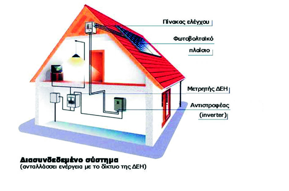 Σχηματική παράσταση διασυνδεδεμένου φωτοβολταϊκού συστήματος