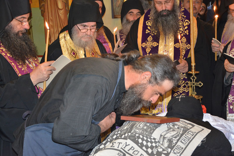 Slujba de înmormântare a avut la loc la Schitul Sfânta Ana Mică și a fost săvârșită de Mitropolitul Pantelimon al Veriei, de Mitropolitul Hrisostom de Kítrous și de Mitropolitul Africii Centrale, Nichifor.