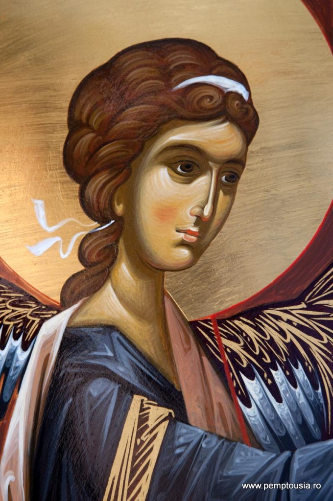 Bunavestire, tempera pe lemn, detaliu. Angela Hanc este membră a UAP și a altor asociații de breaslă românești și internaționale