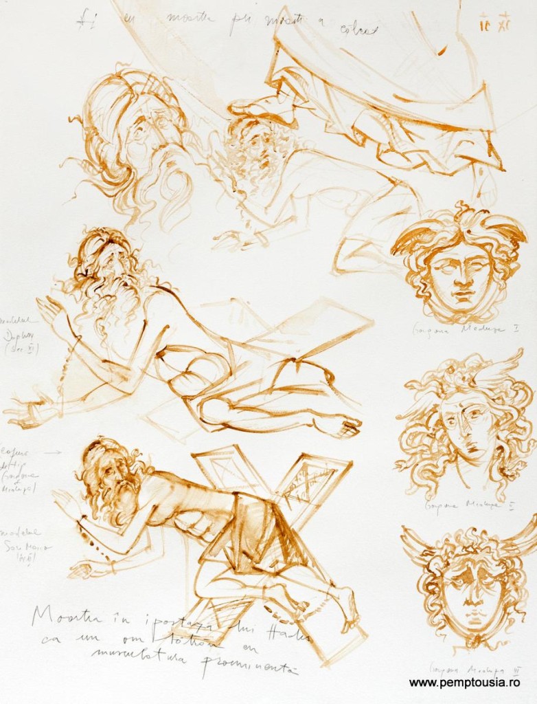Studiu pentru ilustrarea Morții din icoana Pogorârii la iad, acuarelă pe hârtie, 65x50cm, 2011