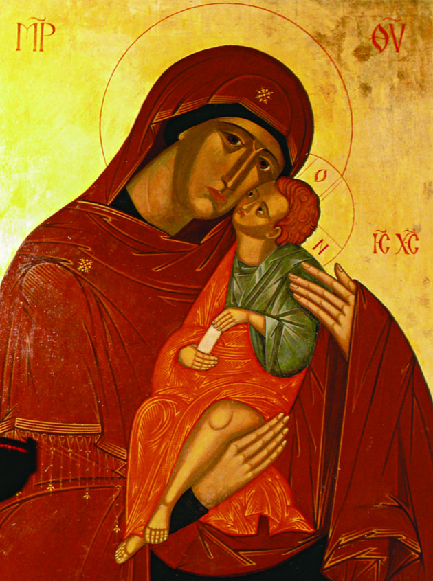 Εικόνα Παναγίας τέμπλου τού ιερού ναού τού Αγίου Σιλουανού. Έργο τού Γέροντα Σωφρονίου.