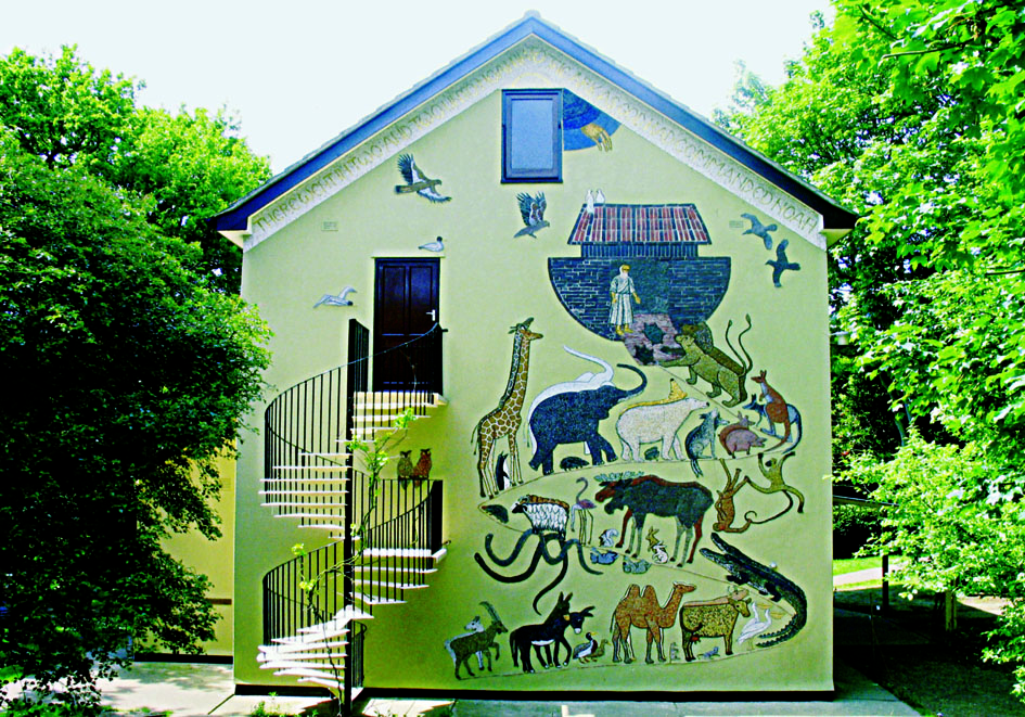 Ψηφιδωτό «Κιβωτός τού Νώε». Ανατολική όψη τής Βιβλιοθήκης τής Ι.Μ. Τιμίου Προδρόμου, Essex.
