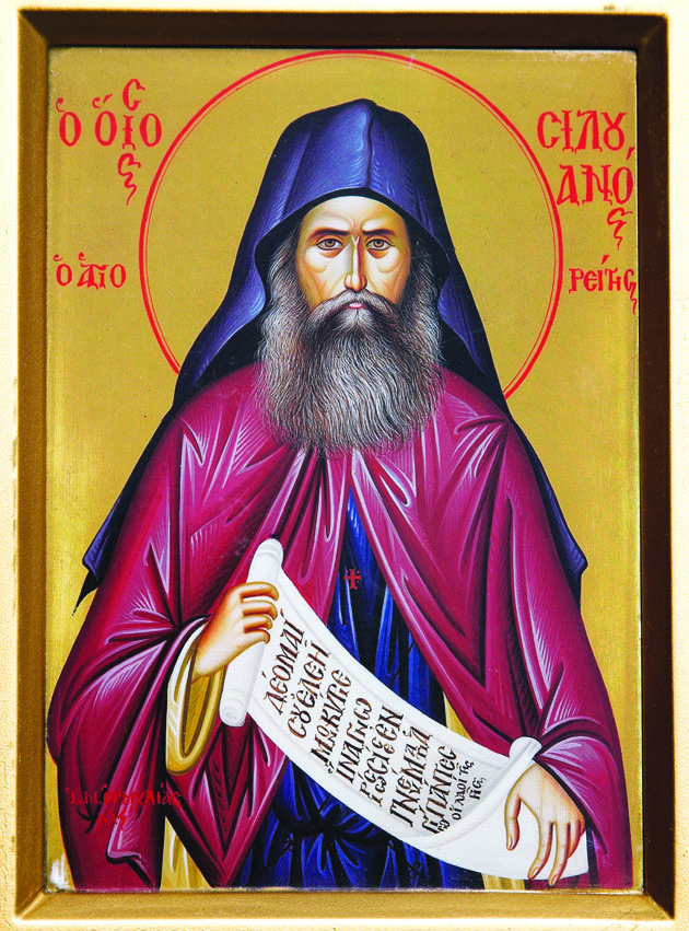 Ο άγιος Σιλουανός ο Αγιορείτης. Φορητή εικόνα Ι.Μ. Ευαγγελισμού τής Θεοτόκου, Ορμύλια.