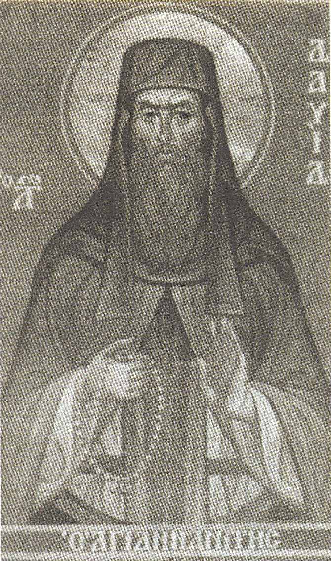 Σύγχρονη τοιχογραφία του οσιομάρτυρος Δαβίδ στην Μονή Ξηροποτάμου. (Από το βιβλίο του Μωυσή Μοναχού, Οι Άγιοι του Αγίου Όρους)