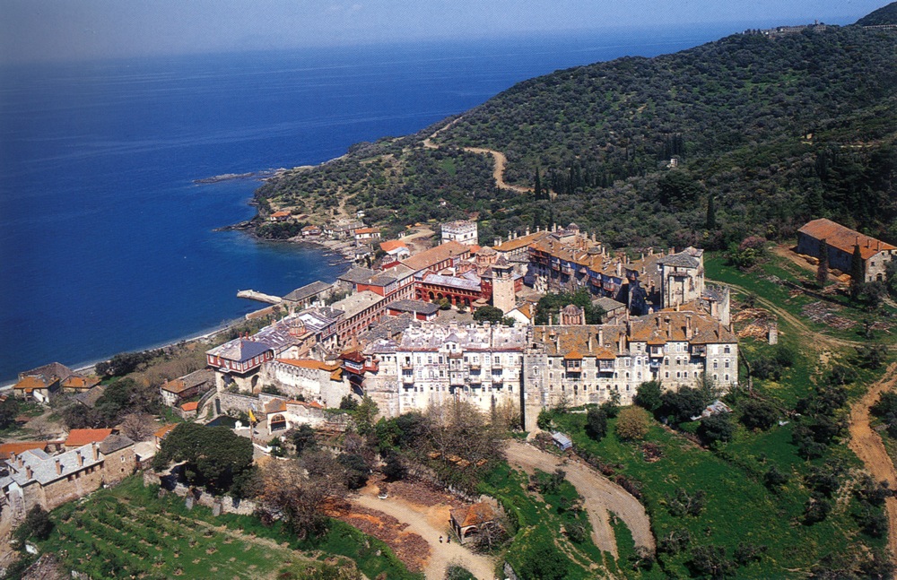 Γενική άποψη της Μονής και του όρμου του Βατοπαιδίου από νοτιοδυτικά
