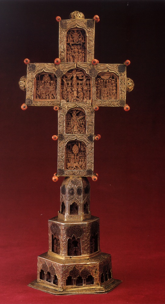 Ξυλόγλυπτος σταυρός με βαθμιδωτή βάση και επίχρυσο δέσιμο, έτος 1674