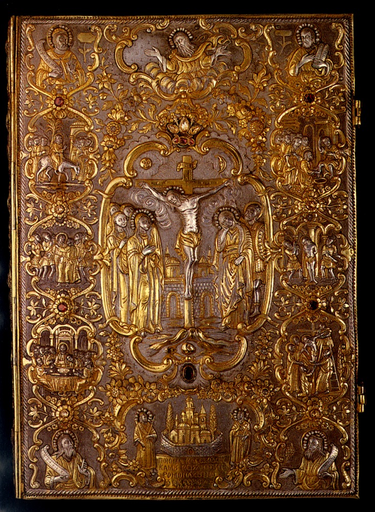 Κάλυμμα Ευαγγελίου, κατασκευασμένο από τον Βατοπαιδινό ιερομόναχο Κωνσταντίνο από τις Σέρρες, έτος 1802
