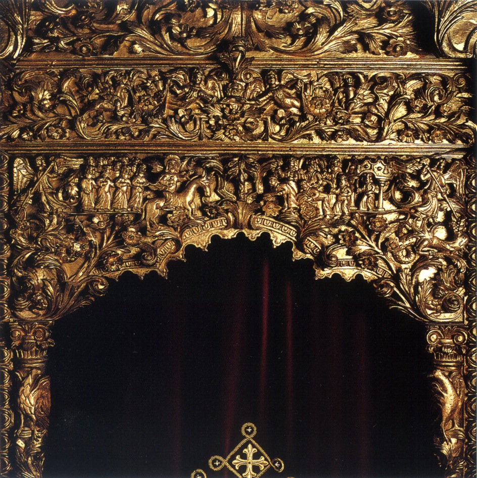 Καθολικό, Τέμπλο (1788) – Επίθυρο της Ωραίας Πύλης και τμήμα του επιστύλιου