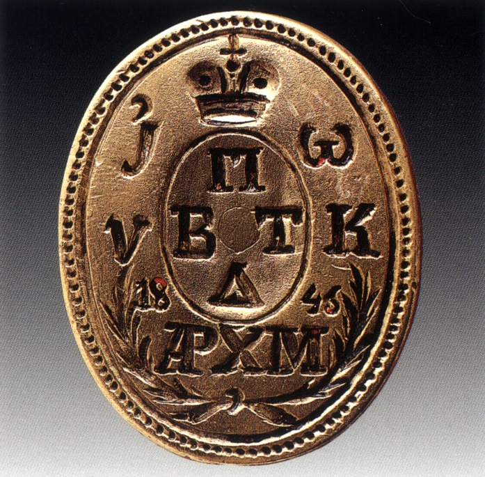 Η σφραγίδα του αρχιμανδρίτου Ιωαννικίου Βατοπαιδινού (1846), διαχειριστή των μετοχιών στην Ρουμανία