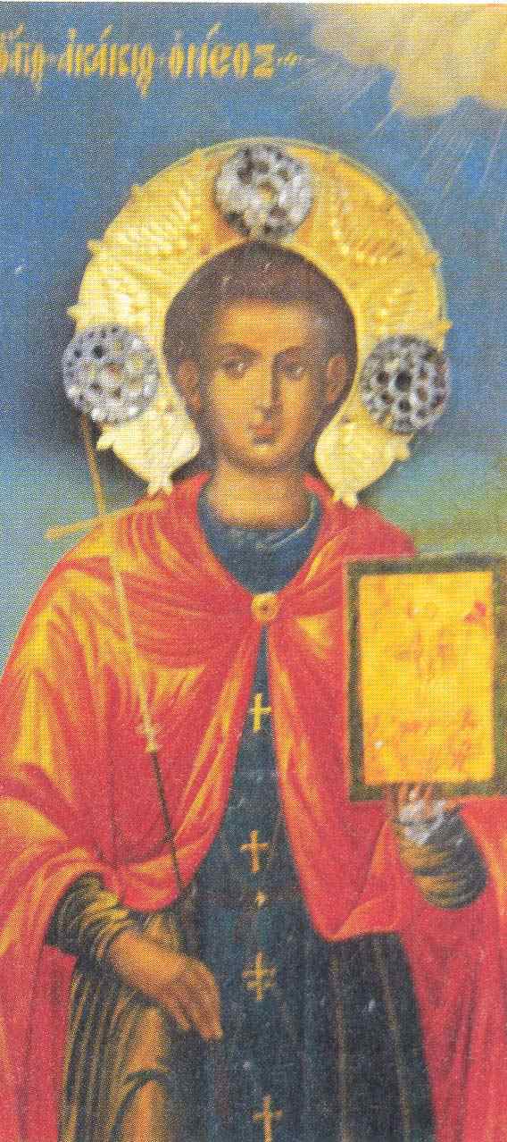 Ο άγιος Ακάκιος. Λεπτομέρεια φορητής εικόνας Ιερού Κελλίου Οσιομαρτύρων Ιεράς Σκήτης Ιβήρων (19ος αιώνας).